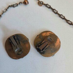 Vintage copper necklace/choker and clip on earrings. Jewelry set.