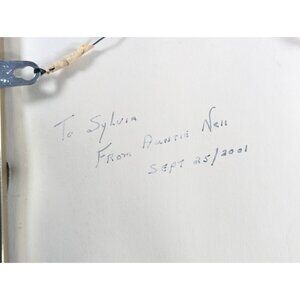 a delightful cross stitch picture of a peacock in an apple tree, it´s long tail trailing beneath him. The rest of the scene shows a low brick wall and flowering brushes. Made by one Nellie Henderson in 2001 for her Niece Sylvia (marked on the back)