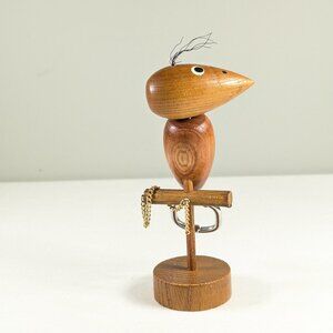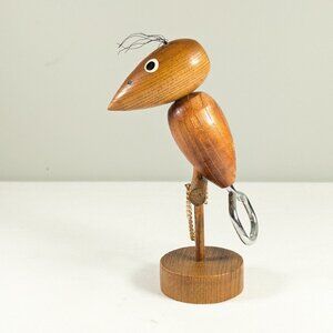 Perfect as home decor or a fun housewarming or Christmas gift, this turned wooden bird has a soda / beer bottle opener tail and a corkscrew hidden under the head. This also makes the head posable. They sit on a little wooden stand with chain.