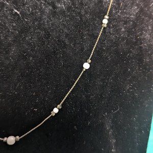 Vintage delicate coppery chain with white beads necklace small size very good condition