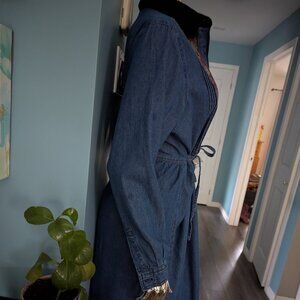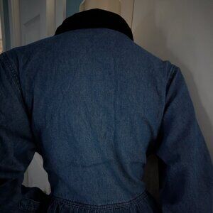 Size medium. 100% cotton. Top with floral pattern. Black velvet collar. 14 buttons on the front and one button on the cuffs. Tied at the waist. Slightly pleated at the waist. Sleeve length: 56 cm. Pit-to-pit: 52.5 cm. Total length: 124 cm.