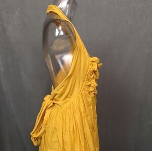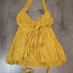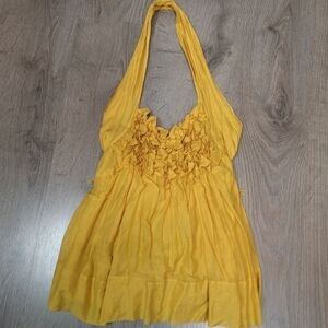 Vintage designer Rachel Roy bright yellow ruched tucked cotton halter top