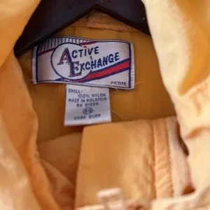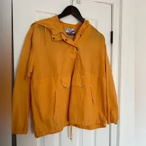 Bought from Bungalow vintage in Toronto and loved it last Spring over jeans and tshirts but have another Spring jacket I wear more often. Faded orange colour.