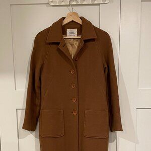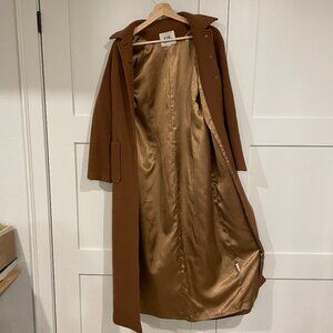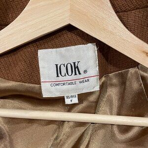 Vintage duster coat in a chestnut brown colour. Translating the tag, I'm getting 65% wool, 35% rayon. Brand is 'ICOK".