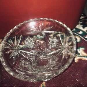 Vintage early American prescut glass Star of David pattern base of punch bowl.