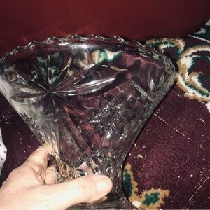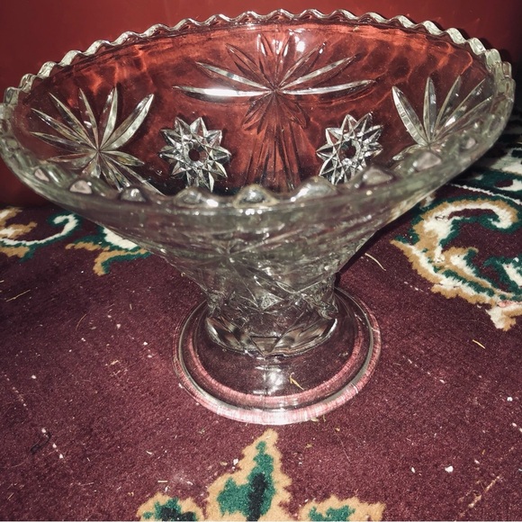 Vintage early American prescut glass Star of David pattern base of punch bowl.