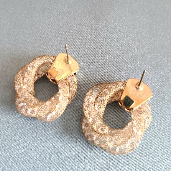 Vintage earrings with sparkly rhinestones/crystals in metal mesh.