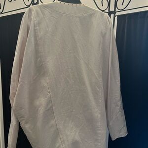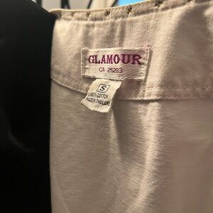 This sophisticated VINTAGE blazer from Glamour features a stunning white and gold color palette, enhanced by intricate embroidery along the front. The open-front design and three-quarter length sleeves make it a versatile piece for both formal and casual occasions.