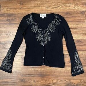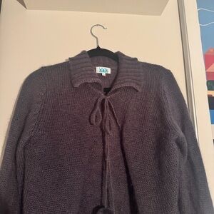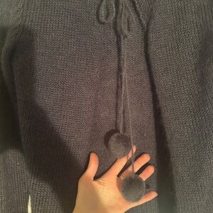 Vintage euro Charcoal Pom Pom tie knit Cardigan Sweater - fits like small