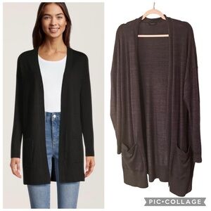 Elevate your wardrobe with this chic charcoal cardigan sweater. Perfect for layering, it adds a touch of elegance to any ensemble.