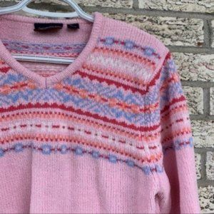 Vintage fair isle DanverHayes Super Soft Pink Sweater Top size women XL