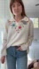 Charming sweater in a creamy chenille type feel fabric. No material or size tag, likely a large in an acrylic.