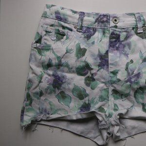Denim vintage floral print shorts. Made in Egypt! Has the name "amanda" printed on inside.