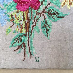 Tapestry Is wrapped around a piece of cardboard. Could be framed or repurposed for a pillowcase or to slipcover a footstool.