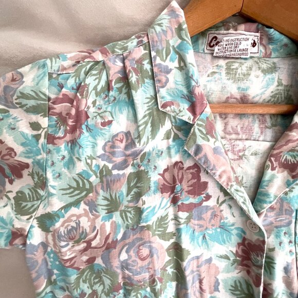 Vintage button up top in vibrant pastel tones, in excellent shape, feels unworn!