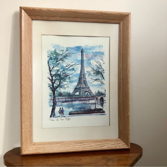 Vintage framed Arno Eiffel Tower watercolour print in very good vintage condition from a pet friendly and smoke free home. Lovely solid wood frame with a matted background. There is minor warping on the matting as per pictures.