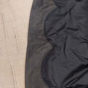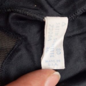 Vintage 1960 black nylon "Satin Suavette" Van Raalte full slip with gathered bust and chiffon detail at chest. Hem has delicate chiffon scallops. size 36 (M) style 7306A. Collector's item.