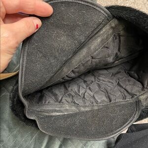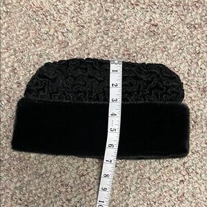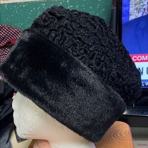 Vintage genuine Fur black Women's winter Hat with wool ear flaps