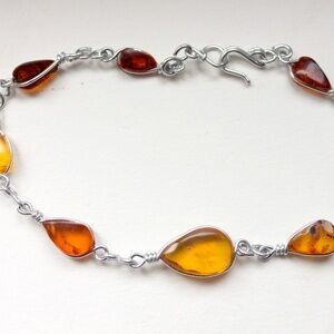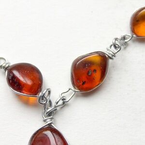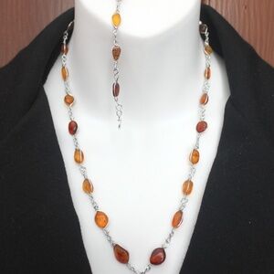 Vintage genuine amber gemstone necklace and bracelet wired set collier bracelet