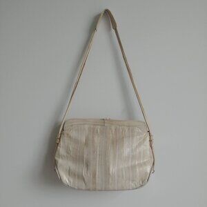 Vintage genuine eel skin cream ivory gold shoulder bag purse