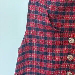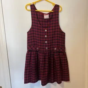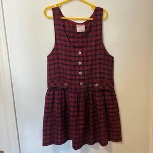 Vintage girls size 8 tartan plaid jumper overall dress buttons