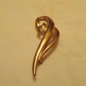 In GUC, 70s style goldtone brooch with spin back closure, can be worn vertically or horizontally, with swirl design.