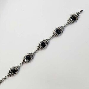 Vintage gothic black onyx chain mail bracelet ✦ Victorian Vampire style ✦
