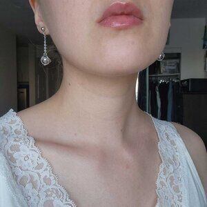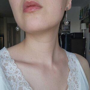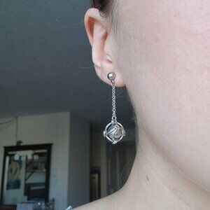 Vintage gothic medieval chain mail long dangly caged pearl silver earrings