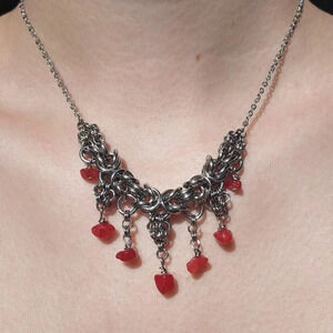 Vintage gothic vampire chandelier with red crystals chunky statement necklace