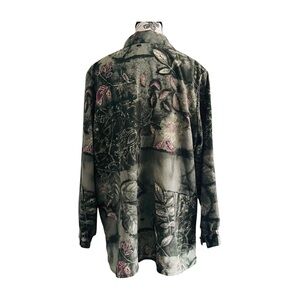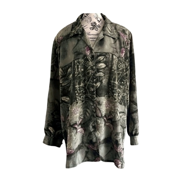 This vintage Tanjay blouse floats like moss on stone — moody, soft, and layered with ghost-botanical detail. Perfect for romantic grunge, slow decay, or fog-drenched walks. Wear it open over a slip dress or tucked into something rigid.