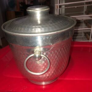 Vintage hammered aluminum ice bucket with lid. Man cave, bar accessories-used