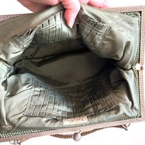 A brief history of Christine Custom Bags. The company was located in the Fisher Building Detroit , Michigan from the 1940's - 1960's. Woman in the area needle pointed the bag itself and then sent it to Christine for finishing. The largest department store "Hudson's" had Christine finish their customer's bags also! And Christine offered the service of pick up and delivery of your finished product by limousine if you were a prominent society matron. Christine bags always exhibit the highest level of workmanship, quality materials and a distinctive pleated expanding interior pocket design.