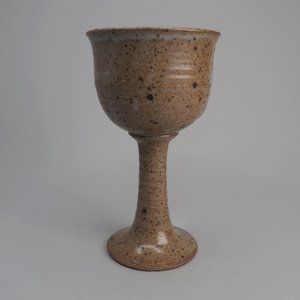 Vintage hand thrown earthenware wine goblet