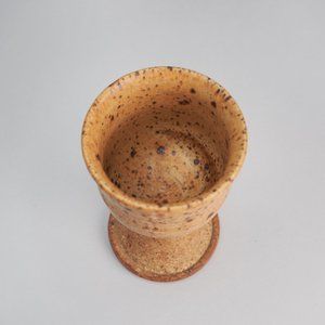 Vintage rustic hand thrown earthenware pottery wine goblet or chalice.