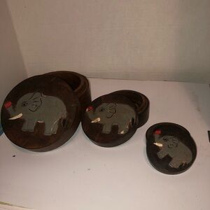 Vintage handcrafted Wooden Elephant Decor Boxes that fit inside of each other