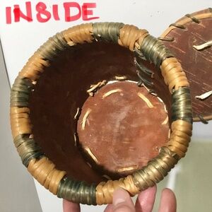 Vintage handmade Birch Bark Basket container with lid
