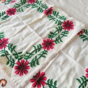 Vintage handmade Cottagecore Embroidered Cream Blanket with Floral Accents
