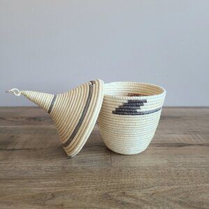 Vintage handmade Tutsi African tight woven basket with lid. 8.5'' tall with lid,