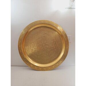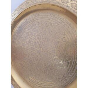 Vintage handmade brass tray, large tea tray, Brass handmade tray, tray, tea tray Bohemian brass tray 1960s Brass Etched