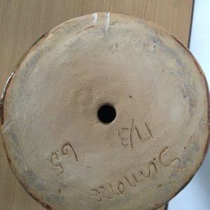 Vintage handmade ceramic bottle vase lamp base 13 3/8" heavy signed Simone 65