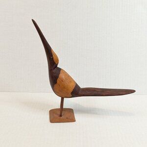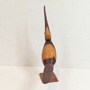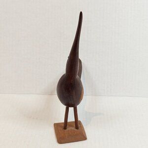 Vintage hard carved wood bird long beak treated