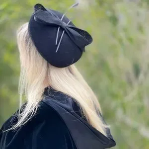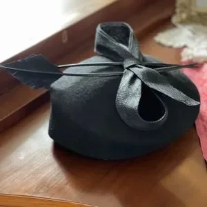 Vintage black wool hat with bow and feathers. Attached comb holds hat in place. 24” circumference. Perfect for Fall and Winter!