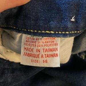Vintage high-waisted dark wash women’s straight leg mom jeans in size 14