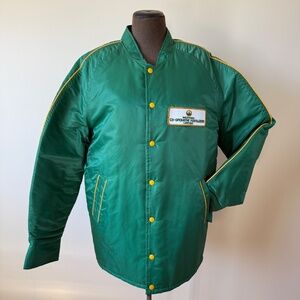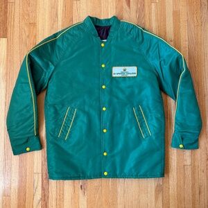 Vintage insulated coach jacket in rich kelly green with sunny yellow piping đź’š