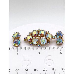Vintage jewelry set, 50's fab Aurora Borealis coloured rhinestones, in gold tone