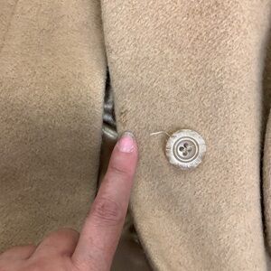 The coat is gorgeous but it has minor issues easily fixable, the button at the opening in the back is missing and one of loop holes for the belt is missing, however there are extra buttons