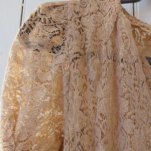 @crestwood8 hello. I am 95% sure it is a cotton lace. bust is 31" waist 25" and length from waist to hem is 41".