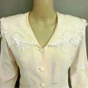 Vintage lace trim pastel pink long sleeves button down blouse/shirt.