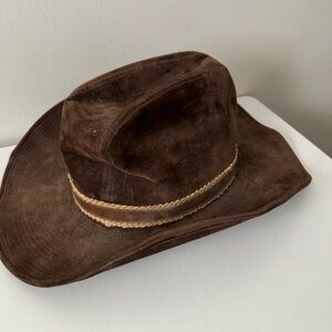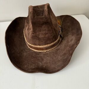 Vintage lanning suede cowboy hat with feather details western ranch unisex