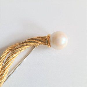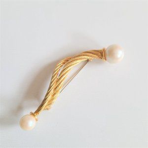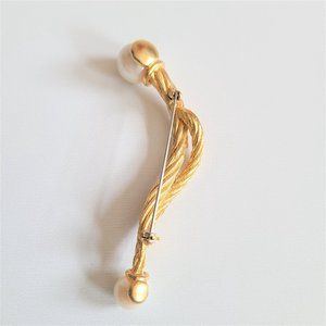 Vintage large unusual shape gold tone brooch with faux pearls. It's almost 3.5'' long. Great condition.